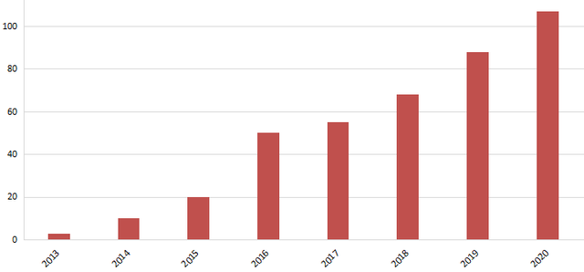 國科微2013年-2020年專利申請數量(單位:件)